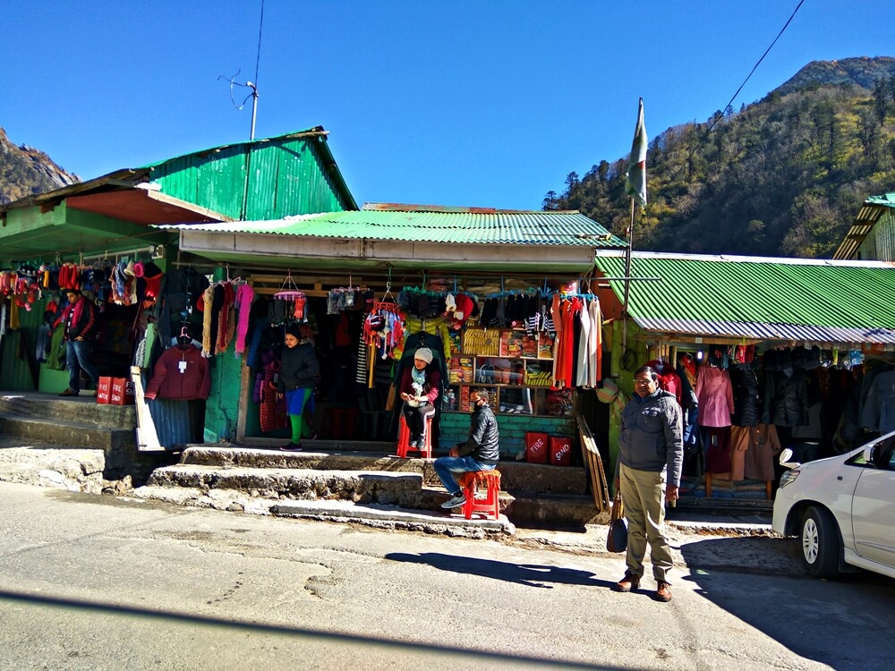 The route from Gangtok to Nathu La is highly militarized and you can find army camps and other military establishments all along the route. Since Nathu La is situated on the Line of Actual control, en route Nathula, the permit is checked multiple times at different locations. The first checkpoint is around 15 km from Gangtok where the driver got down to obtain the required permits. After obtaining the permits, we drove ahead along the anfractuous roads. After 1 hour we stopped for some refreshments. There are many small shops along the way where you get winter garments, wine, cigarettes and snacks (all in the same shop). We halted there for about 20 mins, had some food and continued our journey.