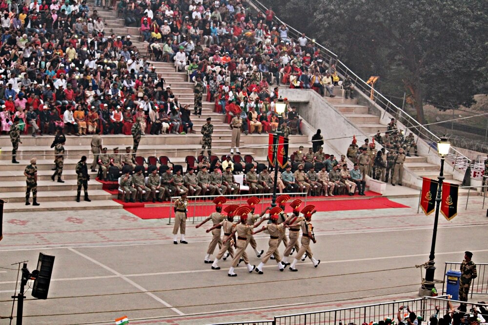 - Reach the venue by 2:45 PM to get a good seat. Sit in the middle tiers where you get a clear view of the activities both on our side as well as Pakistan side.