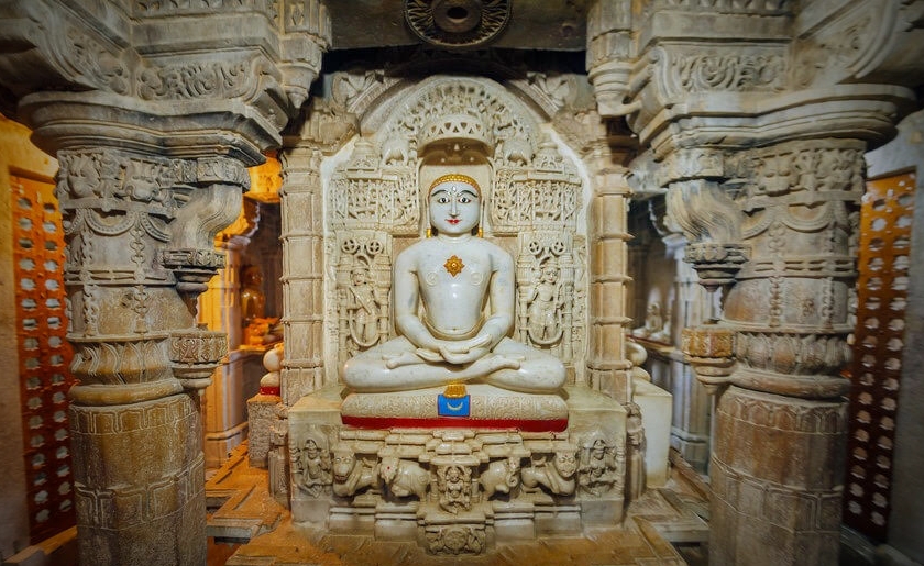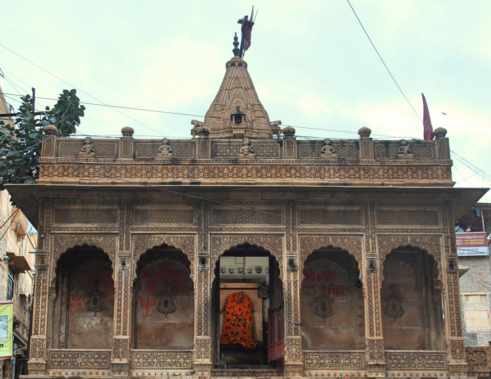 Inside the fort there are beautiful Hindu and Jain temples. Jaisalmer fort has 7 beautiful Jain temples which were constructed around the 15th century. The Parshvanatha temple is the oldest and the most beautiful temple in the complex. The entrance of the temple has exquisitely carved torans (archways) and pillars. Inside the temple, the roof is adorned with a chandelier like structure carved from a single stone. Another beautiful temple inside the fort complex is dedicated to Sambhavanath (the 3rd Jain tirthankara). It also has an underground chamber called the Gyan Bhandar where old Jain manuscripts written using palm leaves are stored. The Parshvanatha idol (identified from the serpent hood) is carved from white marble while the Sambhavanath idol is carved from yellow sandstone. These temples were built by the wealthy Jain merchants who earned their fortunes by controlling the flourishing trade that passed through the famed silk route which passed through Jaisalmer. While the merchants themselves lived outside the fort in beautiful havelis (mansions), to protect the ancient manuscripts and idols from the invaders, they built the temples inside the fort which was considered impregnable.