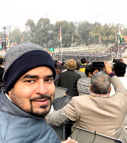 Our efforts to secure a ticket through the “Amantran” website launched by Ministry of Defence ended in utter disappointment last year when even after trying for days, we could manage to login to the portal. This year as the Republic turned platinum, fortune favoured us and we managed to get 2 tickets for the 75th Republic Day. We were super excited to witness the grand parade that we grew up watching each year on TV. Meticulous planning goes into the traffic and crowd management on the day of the event. We followed the advisory issued on the previous day and reached the Central Secretariat metro station on the yellow line of Delhi metro, the station closest to our enclosure at around 8:40 AM. We were already quite late and unsure if we would be allowed inside but as we reached close to the entrance gate we saw a long queue waiting for their turn to be screened before entering. There are multiple rounds of scanning and frisking which delays the entry but its all for the right reasons. After 3 rounds of scanning, we entered enclosure no. 8, which was the second enclosure from the India gate end. It was not the most ideal location but we were happy to have managed to get an entry to the event which was a bucket list item for many years now.