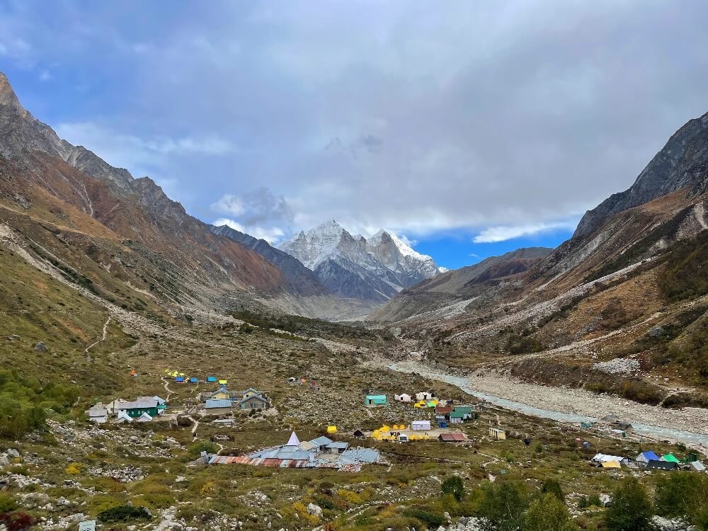 Next point on the way is Chirwasa which is a sort of pitstop where refreshments (read Maggi and tea) are available. The route from Chirwasa to Bhojbasha is difficult due to the steep & desolate terrains as well as exhausted legs, so better to relax, have conversations with co-trekkers and eat well before trekking ahead. Bhojwasa is another 5-6 kilometers from Chirwasa. This is the most challenging section of the trek – falling stones, steep climbs and sections with large boulders which one has to navigate quickly. We managed to do pretty well and reached Bhojwasa around 3 PM. We were among the earliest to have reached the Bhojwasa campsite. At Bhojwasa there is the Ram Baba ashram that provides night accommodation, food and bedding to the trekkers against a small donation amount. There are camps available for those trekking with trekking agencies and GMVN guesthouses which needs to be pre-booked. The GMVN guesthouse is the most luxurious option with private rooms/ bunker beds and good food but it is costly and needs to be booked in advance.